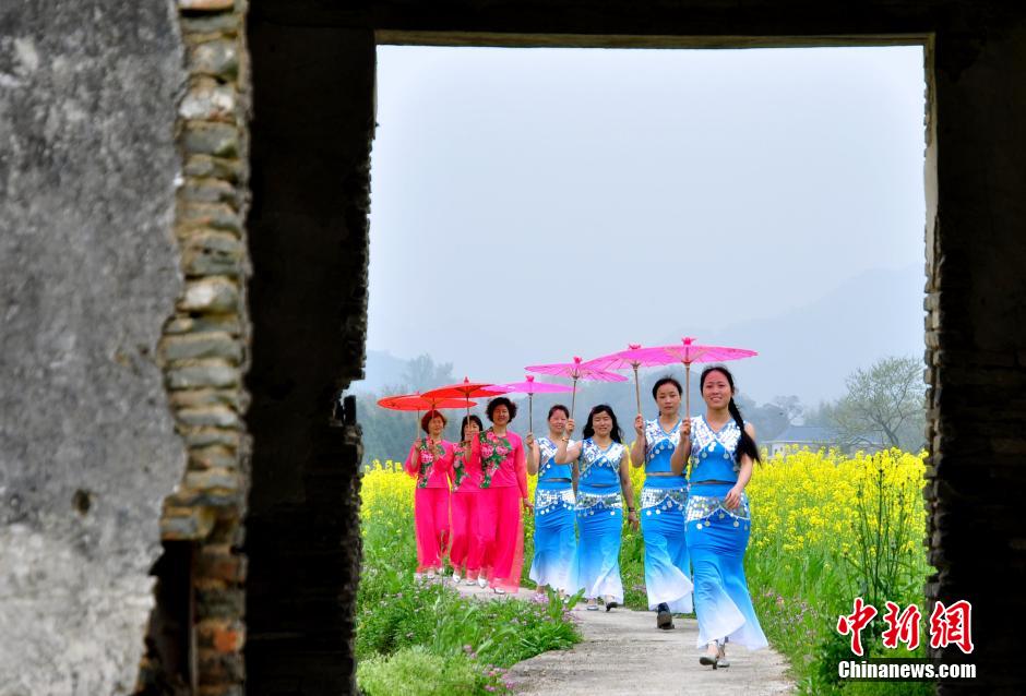 3月20日,江西省德興市??阪?zhèn)杜村婦女在田間花?!白咝恪薄.斎?,江西德興市??阪?zhèn)杜村一批家庭婦女以千畝油菜花海為舞臺,展示自己的才藝形象,希望宣傳家鄉(xiāng)的自然生態(tài)與人文歷史,擴大旅游知名度和影響力。德興市??阪?zhèn)杜村交通便利,自然風光優(yōu)美,村內有歷史古跡和名木古樹。 胡敦煌 攝