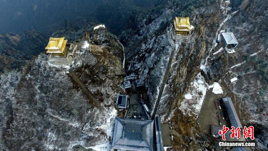 3月23日,河南洛陽老君山遭遇“倒春寒”,海拔2000米的老君山三月飛起“桃花雪”,玉樹瓊枝、銀裝素裹,金頂廟宇和蒼松翠柏相襯,猶如一幅精致的水墨畫。 中新社記者 王中舉 攝