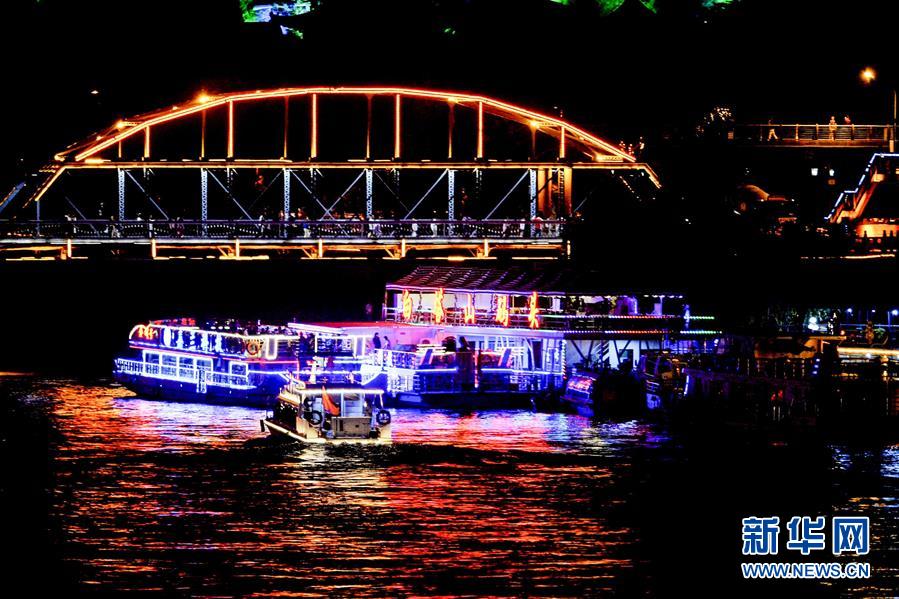 6月14日,一艘游輪從黃河蘭州段中山橋下穿過(guò)。自6月12日起,蘭州黃河游輪夏季夜航航線正式開通。據(jù)了解,作為黃河蘭州段水上旅游重點(diǎn)線路,該航線由蘭州市城關(guān)區(qū)蘭州港碼頭和白塔山碼頭始發(fā),每晚20時(shí)起開行,全程約6公里,運(yùn)行時(shí)長(zhǎng)50分鐘左右。游客可以乘坐豪華游輪欣賞黃河夜景,感受蘭州黃河風(fēng)情線別樣魅力。新華社記者 陳斌 攝