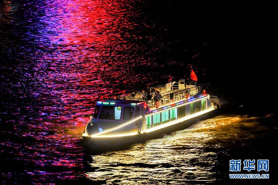 6月14日,一艘游輪從黃河蘭州段中山橋下穿過。自6月12日起,蘭州黃河游輪夏季夜航航線正式開通。據了解,作為黃河蘭州段水上旅游重點線路,該航線由蘭州市城關區(qū)蘭州港碼頭和白塔山碼頭始發(fā),每晚20時起開行,全程約6公里,運行時長50分鐘左右。游客可以乘坐豪華游輪欣賞黃河夜景,感受蘭州黃河風情線別樣魅力。新華社記者 陳斌 攝