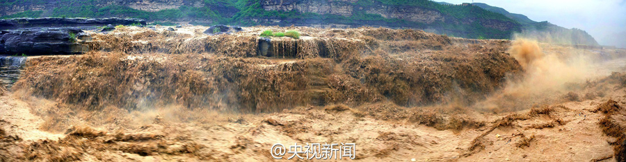 受上游強降雨和水庫放水影響,最近幾天,黃河壺口瀑布迎來伏汛,最大水流量達到每秒2600立方米左右,濁流滾滾奔騰而下,氣勢磅礴!(央視記者李志 文豪)