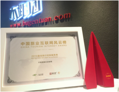 2016年8月18日,由旅業(yè)傳媒&榜中榜傳媒主辦的第4屆中國(guó)旅業(yè)互聯(lián)網(wǎng)大會(huì),在北京拉開帷幕。不跟團(tuán)旅行定制網(wǎng)榮獲“2016最佳旅行定制服務(wù)商”大獎(jiǎng),這是中國(guó)旅游行業(yè)對(duì)不跟團(tuán)旅行定制網(wǎng)一直以來致力于打造“最有價(jià)值的定制旅行資源服務(wù)商”而不懈努力的高度認(rèn)可。