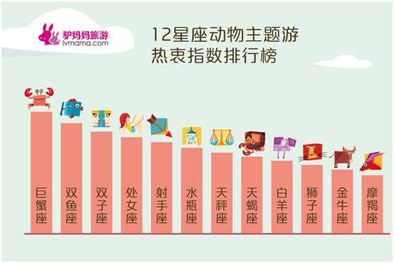 “以前大家都會覺得動物主題游就是去逛動物園,事實上動物主題游早已超出這個范疇。”驢媽媽CEO王小松提到:目前國內(nèi)動物主題游主要包括動物園、野生動物園和海洋館等景區(qū)場館類旅游,而以動物為主題的度假酒店和戶外動物保護基地游覽也都應(yīng)該涵蓋在內(nèi)。動物主題游最受親子家庭青睞,安全問題更不容忽視。 親子游客占比超65% 摩羯座最不愛逛動物園