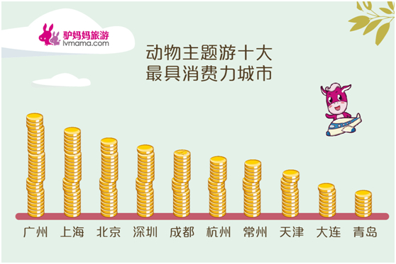 游客的動物主題游花了多少錢?從人均消費指數(shù)看,去年游客在驢媽媽預(yù)訂的動物主題游產(chǎn)品,人均消費在350元左右。單價最低的是門票產(chǎn)品,而“門票+酒店+交通”打包的度假類動物主題游產(chǎn)品價格較高,比如購買廣州長隆野生動物世界產(chǎn)品的游客人均消費超過1000元。在消費頻次方面,一年游玩1次的人群占比59%,游玩2次的占比27%,3次及4次以上的分別占比8%和6%。 哪些地方的游客在動物主題游上最舍得花錢?數(shù)據(jù)顯示,動物主題游消費總額前10的出發(fā)地城市分別為:廣州、上海、北京、深圳、成都、杭州、南京、天津、大連、青島。 在動物主題游消費構(gòu)成方面,除了門票外,游客在景區(qū)消費金額排名第一的是餐飲,其次為游樂項目、紀念品等。 國內(nèi)十大人氣動物園、海洋館榜單揭曉