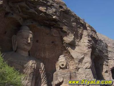 云岡石窟位于山西省大同市以西16公里處的武周山南麓。石窟始鑿于北魏興安二年(公元453年),大部分完成于北魏遷都洛陽(yáng)之前(公元494年),造像工程則一直延續(xù)到正光年間(公元520~525年)。石窟依山而鑿,東西綿亙約1公里,氣勢(shì)恢弘,內(nèi)容豐富?,F(xiàn)存主要洞窟45個(gè),大小窟龕252個(gè),石雕造像51000余軀,最大者達(dá)17米,最小者僅幾厘米。窟中菩薩、力士、飛天形象生動(dòng)活潑,塔柱上的雕刻精致細(xì)膩,上承秦漢(公元前221年~公元220年)現(xiàn)實(shí)主義藝術(shù)的精華,下開(kāi)隋唐(公元581~907年)浪漫主義色彩之先河,是世界聞名的石雕藝術(shù)寶庫(kù)之一。1961年國(guó)務(wù)院公布為全國(guó)重點(diǎn)文物保護(hù)單位,2001年被列為世界文化遺產(chǎn)。