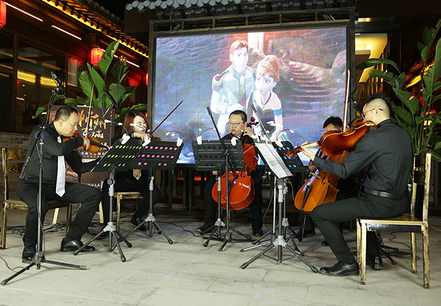 人民網(wǎng)忻州6月2日電(李夢文)6月1日晚8點30分,華燈璀璨的忻州秀容古城突然傳來一陣優(yōu)美的西洋音樂,街邊游客循著音樂聲聚集到河曲院落?!讹L中奇緣》《冰雪奇緣》《美女與野獸》《天空之城》《千與千尋》,隨著這一首首耳熟能詳?shù)臉非谝魳芳沂种辛魈识觯牨娨苍絹碓蕉?,越來越激動?/p>