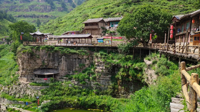 位于山西省蘆芽山晉西北管涔山深處,濃密蔥蘢的林海之中,有三個(gè)古老神奇的懸空村:王化溝村、五花山村、曹家梁村,均屬寧武縣涔山鄉(xiāng),三村相距很近分別建在懸崖絕壁間,遠(yuǎn)望好似空中樓閣,天上人家。村里房屋都建在百米高的懸崖絕壁上,街道是立木支撐、圓木鋪架的“棧道”。在這個(gè)古老的村子里,處處可見(jiàn)石砌的小徑、古樸的民居,村民們悠然地過(guò)著日出而作、日落而息的農(nóng)耕生活。村子古老、靜謐,卻遠(yuǎn)近聞名。