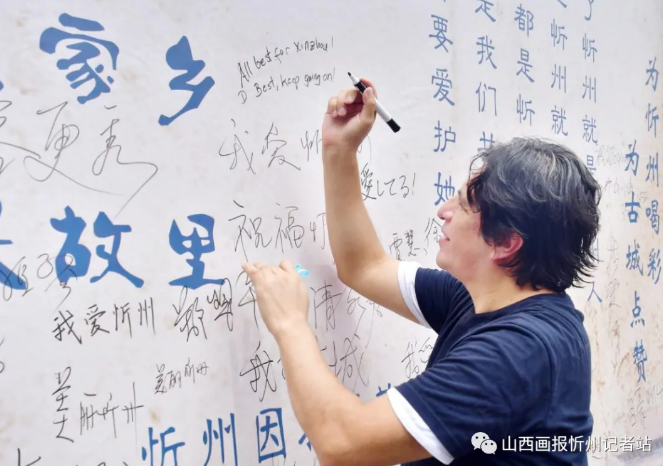 “走遍千山萬水,還是忻州最美”“來了忻州就是忻州人,來過忻州就是忻州人”“愛國當(dāng)愛家鄉(xiāng) 興邦先興故里”……墻上的一句句充滿情感、生動(dòng)質(zhì)樸的語言,寫滿了對(duì)祖國、對(duì)家鄉(xiāng)的濃濃熱愛,引起了過往游客路人的深深共鳴。游人們有的在這些文字旁簽名,有的合影留念,有的文思泉涌寫下一條條深情寄語,盡情表達(dá)著對(duì)忻州發(fā)展的美好祝福和共建全國文明城市的堅(jiān)定信心。