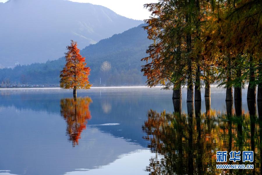 11月14日,安徽省黃山市黟縣奇墅湖晨霧縹緲,美如仙境。新華社發(fā)(水從澤攝)
