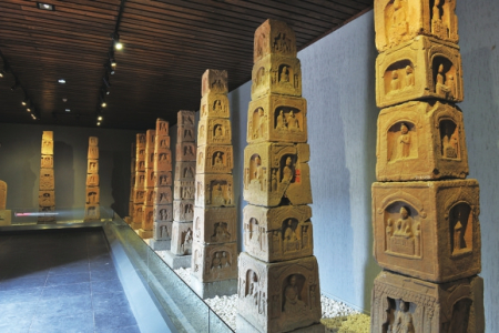走進(jìn)長治市博物館,仿佛進(jìn)入了歷史的長廊,從創(chuàng)世之初、石之美者、塑土成陶、晶玉之瓷到吉金佳器,5個單元的館內(nèi)陳列展覽盡顯了長治古老的文明。其中的“創(chuàng)世之初”主要反映早期人類在長治地區(qū)的生產(chǎn)生活痕跡。展品有義和、花坡兩處舊石器時代文化遺址和多處新石器時代文化遺址,表明了長治是中華文明的早期發(fā)祥地之一。“石之美者”陳列的玉石雕琢而成的器物,主要出土于西周、春秋、戰(zhàn)國墓葬中,種類豐富,精美非凡。多為祭祀、禮儀、裝飾、陳設(shè)用品,有極高的歷史價值和藝術(shù)價值?!八芡脸商铡闭龟惖奈奈镏饕翘掌鳎瑥男率鲿r代遺址中出土的體現(xiàn)“龍山文化”特色的陶器,到商代、漢代,直至隋唐之際的陶器,時間跨度非常之大。種類涵蓋飲食器、貯藏器等生活實用器和專為殉葬而制作的各類明器。尤其是用作明器的三彩陶器,凡與死者在世生活有關(guān)的如建筑、家具、牲畜和人物等無不具備,包羅萬象,真實再現(xiàn)了當(dāng)時各個階層人士的不同生活面貌?!熬в裰伞闭龟惖挠兴宕那啻善?、唐代的白瓷,以及宋、金、元代的瓷器。據(jù)介紹,珍藏的宋、金、元時期瓷器品種數(shù)量多,南、北窯系均有,主要以霍州窯和磁州窯系列為主,其中,長治的八義窯(磁州窯系)生產(chǎn)的紅綠彩瓷是我國北方地區(qū)較具特色的釉上彩瓷?!凹鸺哑鳌闭故镜膭t是青銅器,以商、周器物為主。長治出土的商代器物與二里崗、殷墟時期銅器風(fēng)格一致,表明了晉式銅器的精美藝術(shù)造型和高超的工藝水平。