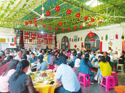 涼粉、野菜、水菜、農家小炒肉、粉條豆腐絲……隨著筷子的一開一合,一道道美味來到了舌間,一道道農家菜入口,心底的鄉(xiāng)愁也漸漸隨之蘇醒。