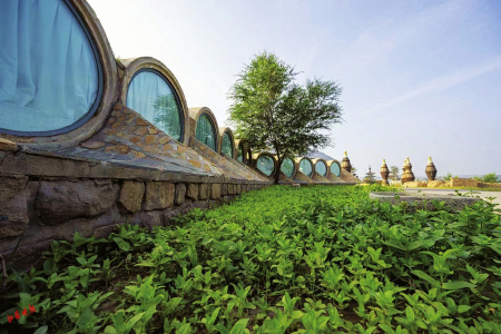 利用碾盤、碑頭等舊石刻和礦山廢機具打造景觀藝術(shù)作品數(shù)百件;將“煤改電”后廢棄的鍋爐房,創(chuàng)新改造為云岡圖書館并面向社會開放;用廢棄水泥塊和各種舊磚塊、舊石雕,修建了頗具歐式風(fēng)格的云岡文保大樓圍墻,尤其是由城市廢舊地下排水管等材料打造成的一排排蝸牛公寓格外引人注目。蝸牛公寓頂棚上安裝的一個個圓形玻璃窗,是用篩煤設(shè)備改造成的,上面鋪設(shè)的太陽能發(fā)電板,在自給自足的同時還可向景區(qū)供電。蝸牛公寓聯(lián)排房間均是由廢棄管道改造成的,大廳內(nèi)有會客廳、洗漱池、公廁等設(shè)施,地下則利用原有礦山廢棄菜窖改造成放映室、酒吧、餐廳等。蝸牛公寓不遠處還有用廢舊鍋爐改造而成的膠囊公寓,在綠草叢中別有風(fēng)趣。這些建筑極大地豐富了云岡文化內(nèi)涵,開創(chuàng)了全國首家世界遺產(chǎn)地利用固體廢物營造景區(qū)景觀的新路,對大同市乃至全國景區(qū)生態(tài)環(huán)境保護有著深刻的教育和借鑒意義。