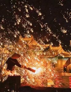 活動(dòng):來(lái)自湖南瀏陽(yáng)的專(zhuān)業(yè)煙花團(tuán)隊(duì)根據(jù)榆次老城環(huán)境特色,打造一場(chǎng)炫酷煙火電音的煙花秀,用零煙花瀑布技術(shù),在安全的前提下為游客帶來(lái)視覺(jué)與美的極致體驗(yàn),將極光天幕+雪景泡泡禮花相結(jié)合,以年輕人的視角與這座百年的歷史古城完美契合,迸發(fā)出新時(shí)代的活力和浪漫。今年榆次老城首次引入大型威亞表演,在電音舞臺(tái)上方演員“飛”奔而來(lái),絢爛的舞臺(tái)燈光承接美輪美奐的威亞敦煌飛天,在45分鐘的飛天表演中,一場(chǎng)傳統(tǒng)美學(xué)和現(xiàn)代流行的結(jié)合悄然展開(kāi),重回千年前的敦煌。同時(shí),老城內(nèi)整體以紅色為主色調(diào),琳瑯滿(mǎn)目的春聯(lián)、門(mén)神、年畫(huà)、福字、橫批、窗花等紅色喜慶元素、布置各種具有著吉祥寓意的大型燈組供游客打卡拍照。