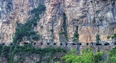 在太行山脈的晉豫交界帶,是我國(guó)第一階梯和第二階梯的分界線。在山脈的東西兩側(cè),地勢(shì)險(xiǎn)要,垂直落差極大,形成了一座座筆直陡峭的懸崖絕壁,也構(gòu)造了大自然鬼斧神工的絕佳壯美奇景,卻也因此地形阻礙了大山居民的出行之路,千百年來(lái)的大山人民過(guò)著與世隔絕的生活。到了20世紀(jì)五六十年代,大山的居民們以愚公移山的精神,克服重重苦難,在懸崖峭壁上一錘一斧開(kāi)出了一條條連接大山與外界的“掛壁公路”。
