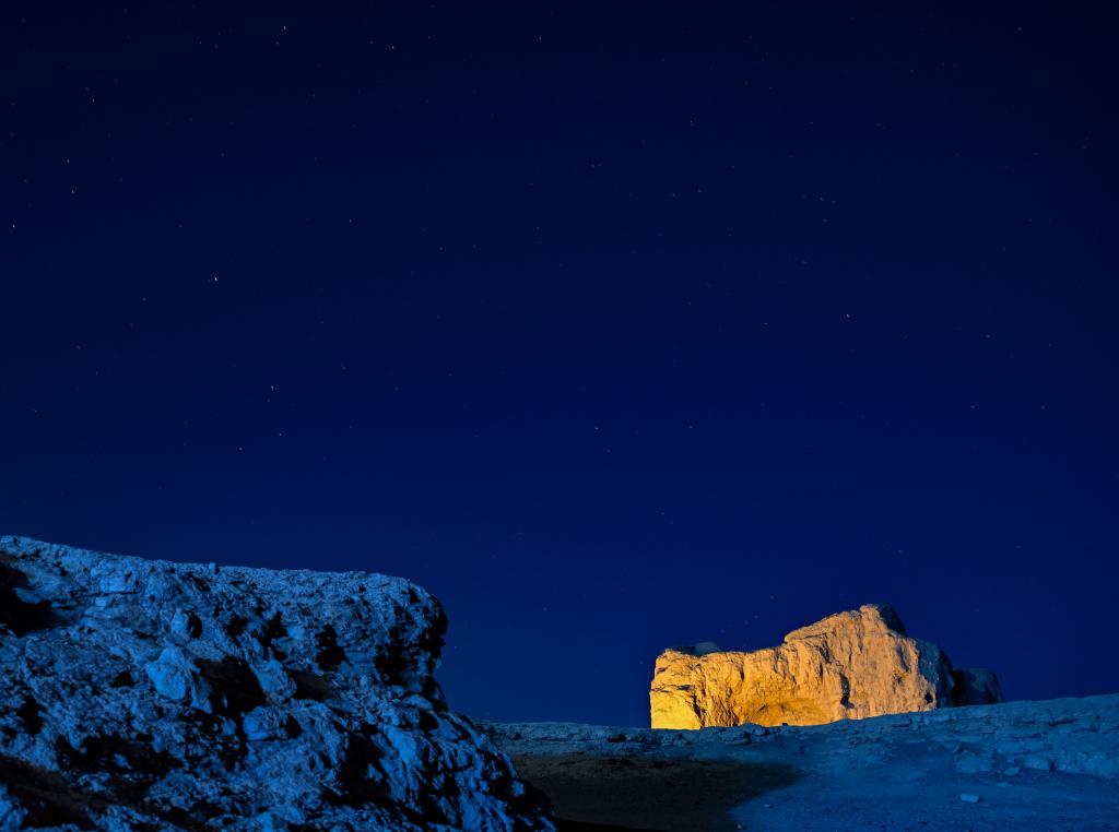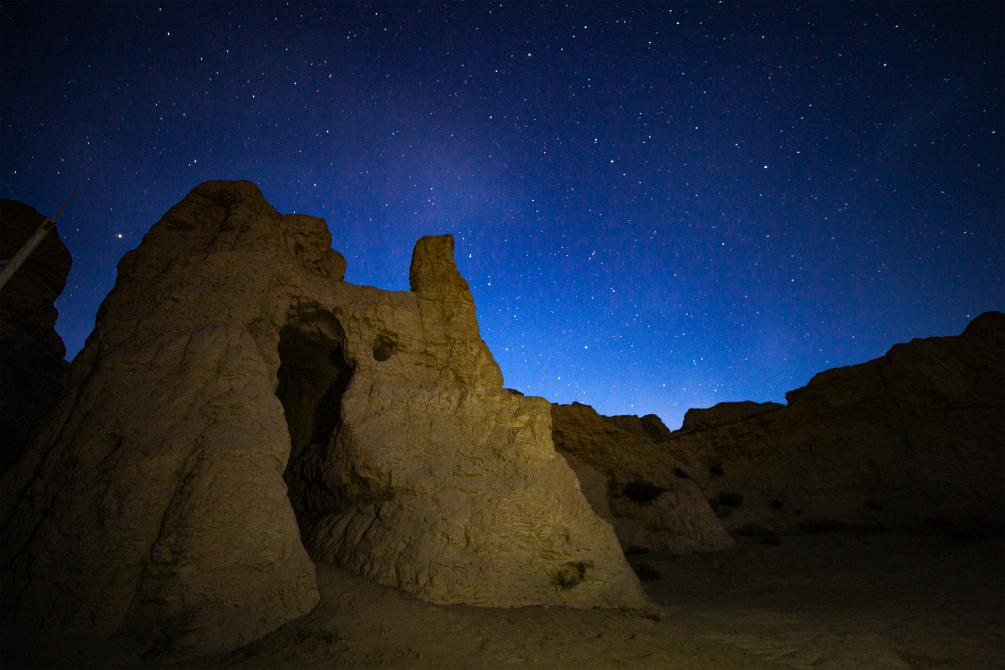 夜幕下的交河故城。(吐魯番市文物局交河故城文管所供圖)