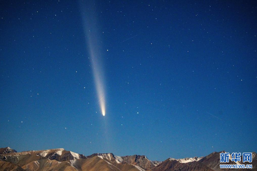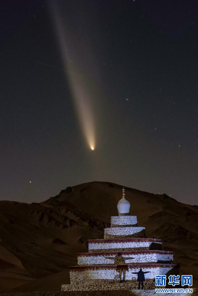 10月13日,拍攝于珠峰加烏拉山埡口的彗星。新華網(wǎng)發(fā) 李明發(fā) 攝