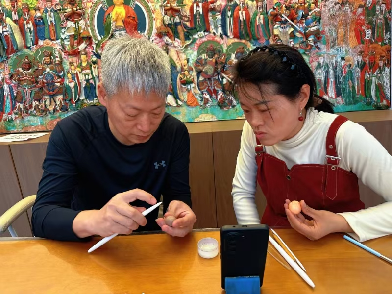 “在這條街上,聚集了很多和我一樣的手藝人。”大海面塑所在的關(guān)帝廟北巷文創(chuàng)街上,一家家非遺店鋪林立——葫蘆烙畫店鋪內(nèi),忻州市忻府區(qū)葫蘆烙畫非物質(zhì)文化遺產(chǎn)代表性傳承人李云珍正手拿烙鐵在葫蘆上創(chuàng)作《八駿圖》;“草木染”非遺體驗(yàn)店里,有游客在體驗(yàn)扎染的樂趣;鋦藝?yán)?,游客圍在忻州市忻府區(qū)鋦瓷藝術(shù)非物質(zhì)文化遺產(chǎn)代表性傳承人王克劍身邊,看一件破碎的瓷器如何經(jīng)過他的雙手重生……