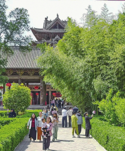 ③4月26日,游人在萬榮縣東岳廟游玩,在宜人的春光里觀賞純木質(zhì)結(jié)構(gòu)建筑飛云樓,感受傳統(tǒng)文化的魅力。