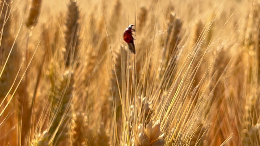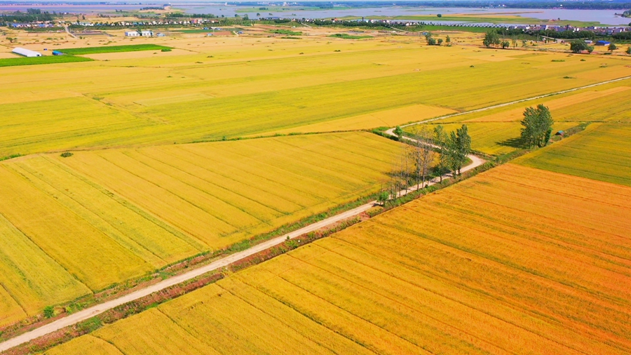 初夏時節(jié),安徽省潁上縣廣袤大地上麥香四溢。麥田在陽光下泛著金黃,麥浪滾滾,收獲在望。麥田、村落、河流、阡陌構成一幅美麗的田園風光。(徐紅梅)??