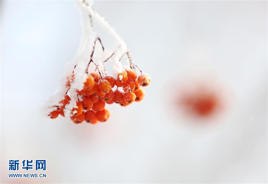 3月2日,在黑龍江省黑河市,幾顆野果在霧凇中顏色更加醒目。當日,位于黑龍江省北部的黑河市出現(xiàn)霧凇景象。 新華社發(fā)(劉松 攝)