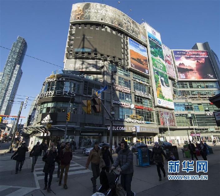 這是1月1日在加拿大多倫多市中心的鄧達斯廣場拍攝的“美麗中國——2017絲綢之路旅游年”主題宣傳廣告牌。從2016年12月26日起,由中國國家旅游局推出、以“美麗中國——2017絲綢之路旅游年”為主題的大型旅游宣傳廣告在加拿大多倫多市中心鄧達斯廣場亮相,向人們展示中國美麗而豐富的旅游資源。整個活動將持續(xù)5周。新華社發(fā)(鄒崢攝)
