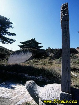 雄關(guān)雁門,居“天下九塞”之首(《呂氏春秋》)。從戰(zhàn)國時期的趙武靈王起,歷代都把此地看作戰(zhàn)略要地。趙置雁門郡,此后多以雁門為郡、道、縣建制戍守。雁門關(guān)之稱,始自唐初。因北方突厥崛起,屢有內(nèi)犯,唐駐軍于雁門山,于制高點(diǎn)鐵裹門設(shè)關(guān)城,戍卒防守?!短茣?middot;地理志》描述這里“東西山巖峭拔,中有路,盤旋崎嶇,絕頂置關(guān),謂立西徑關(guān),亦曰雁門關(guān)?!焙蠼?jīng)五代十國、宋、遼、金、元約四百余載。元朝設(shè)千戶所,關(guān)城被毀。明代吉安侯陸享于洪武七年(1374)自監(jiān)民工筑新關(guān)于舊關(guān)東北十里處的要道。南距代城縣四十余里,北鄰廣武古城二十一里,地勢更為險要。明末清初的著名學(xué)者顧炎武曾親臨此地。他寫道“雁門重關(guān),山巒在演,霞飛云舉,兩山對峙,其形如門,而飛雁出于其間?!痹撽P(guān)城,周長二里,墻高二丈,石座磚身,雉堞為齒,洞口三重,曰東門、西門、小北門。東門上筑樓臺,曰雁樓,門額嵌石匾一方,橫書“天險”(即“天險”)。西門上筑有楊六郎廟,門額嵌石匾一方,橫書“地利”(即“地利”)。小北門未設(shè)頂樓,但磚石結(jié)構(gòu),格外雄固。門額石匾橫刻:“雁門關(guān)”三字。洞門兩側(cè)鑲嵌磚鐫楷書檢聯(lián):“三關(guān)沖要無雙地,丸塞尊崇第一關(guān)?!睎|門外北側(cè)建有“靖邊寺”祀戰(zhàn)國時代的軍事家趙將李牧。西門外右側(cè)建有關(guān)帝廟。關(guān)城正北置有駐軍營房,東南設(shè)有練兵教場。整個關(guān)城建筑,虎踞龍盤,雄偉壯觀。明清以后,關(guān)城雖屢有重建。但隨著我多民族統(tǒng)一國家疆域的逐步形成,內(nèi)長城作為“內(nèi)邊”的作用已經(jīng)失去,所屬的雁門雄關(guān)也隨之荒廢?,F(xiàn)在的關(guān)城僅在東門、西門、小北門三個門洞和靖邊寺前的一對石獅,一副石旗桿,明鐫李牧碑石一塊,以及寺后的數(shù)株青松。