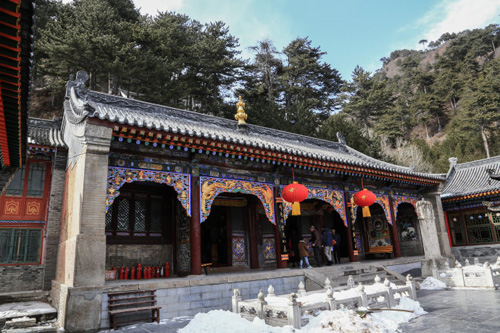 現(xiàn)僅存有四座大殿,分別是天王殿、大雄寶殿、觀音殿和關(guān)公殿,其中觀音殿又稱文殊殿,殿內(nèi)供奉有五尊菩薩,兩側(cè)是十八羅漢。寺后有一座小院,院內(nèi)有乾隆五十一年建造的十五世章嘉活佛墓塔。墓塔八面雕有精細的人物圖案。章嘉活佛是黃教中一個歷代沿襲的職位,其地位僅次于達賴、班禪活佛??滴趸实圩鹫录位罘馂椤按髧鴰煛?,讓其統(tǒng)管內(nèi)蒙五十旗。第十九世章嘉活佛、即末世活佛被袁世凱委任為北京、西寧、五臺山黃教的首領(lǐng),后來還擔任了國大代表。這個末世活佛在五臺山擁有極大權(quán)力,因鎮(zhèn)海寺是他的行署,所以鎮(zhèn)海寺的規(guī)模也日漸龐大。