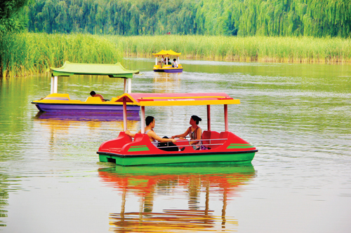 近日,原平市市民正在公園湖里劃船,有說有笑,暢談生態(tài)環(huán)境給大家?guī)淼母l怼T街匾暰G色發(fā)展,從“心”重視開始,把綠色理念貫穿在環(huán)境保護、生產(chǎn)發(fā)展中,從綠色設計、綠色生產(chǎn)、綠色運行、綠色回收、綠色再生產(chǎn)到應用綠色能源、使用綠色包裝、實施綠色營銷、開展綠色貿(mào)易等,不斷豐富著綠色發(fā)展的內(nèi)涵和外延。(吉建平 攝)