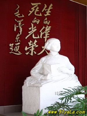 劉胡蘭(1930-1947),中國共產(chǎn)黨黨員,1946年參加革命,1947年山西軍閥閻錫山的軍隊突然襲擊時被捕,英勇不屈,在敵人鍘刀下壯烈犧牲。毛澤東曾在當時《晉綏日報》上為之題詞:“生的偉大,死的光榮。”