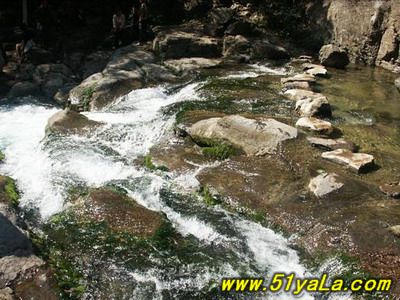 過了洗臉盆便是水簾洞。一股兩米寬的泉水從北峽溝的洞中涌出,緩流四五十米后順山崖直壁而下,一派“飛流直下三千尺”的磅礴氣勢。其后一深洞,嘩嘩瀑布落就半崖伸出的青石板上,打著飛快的漩渦卷人洞內,而后又從洞底端漏口處噴出,驚濤駭浪之聲震山蕩谷。泉水正是莽河之源。這個洞叫“出水洞”,一年四季泉水奔流不息。泉水流經之處,有一個懸崖,形成瀑布,這就是莽河著名的風景區(qū)“水簾洞”,因為懸崖中間有個洞,像是在瀑布中間有個巨莽的腦袋,蟒口大張,吸水噴霧,戲耍流泉。另有一塊巨石,像是一只烏龜從甲殼底下探出了頭,似乎在祈求幫助。嘩嘩瀑布落就半崖伸出的青石板上,打著飛快的漩渦卷人洞內,而后又從洞底端漏口處噴出,驚濤駭浪之聲震山蕩谷。