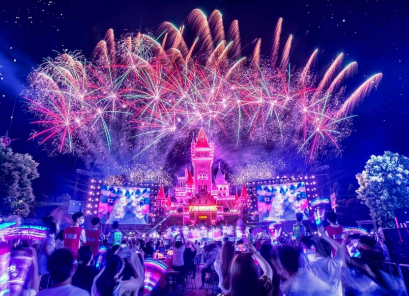 濟(jì)寧、青島、寧波、嘉峪關(guān)方特和臨海熊出沒(méi)歡樂(lè)港灣日夜雙場(chǎng)狂歡激情啟幕,當(dāng)紅歌手、實(shí)力DJ、男團(tuán)女團(tuán)輪番助陣,更有多個(gè)主題的無(wú)人機(jī)和焰火秀震撼上演,將夏夜激情推至高潮。鄭州方特三園舉辦“潑水電音季”“熊出沒(méi)潑水節(jié)”“心動(dòng)狂歡節(jié)”,三大主題電音派對(duì)、繽紛親子演藝互動(dòng)、顏值NPC組團(tuán)寵粉,開(kāi)啟為期兩個(gè)月的盛夏狂歡盛宴。