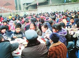婚喪嫁娶、祝壽以及蓋房上梁等,太原人都統(tǒng)稱為“事筵”。雖然各種事筵規(guī)模不一,但幾乎各家都要攤上這攬子事兒,所以事筵不僅關(guān)乎自家的門面兒,也是鄉(xiāng)村人家積累人脈資源的“助手”,更是一種濃郁的民俗活動。