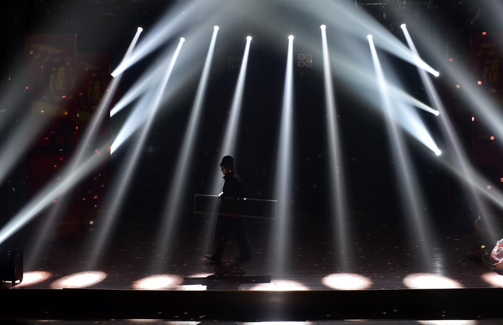 ↑1月3日,在山西省渾源縣貧困山區(qū)合唱團(tuán),一名工作人員在搬運(yùn)設(shè)備為文藝下鄉(xiāng)匯演做準(zhǔn)備。