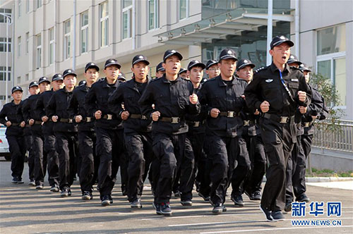 王培(前)帶領(lǐng)隊員集訓(xùn)(2012年6月12日攝)。 新華社發(fā) 漯河市公安局特殊警務(wù)支隊第二特殊警務(wù)大隊長王培,入警15年,總是出現(xiàn)在急難險重的現(xiàn)場,總是沖在最前面,令妻子牽腸掛肚。 “上一次你替換人質(zhì)時候負傷,當我趕到醫(yī)院,發(fā)現(xiàn)你眉骨縫了7針,右肩被撕裂一道大口子,你真的不知道我除了擔心,還有埋怨。每次你執(zhí)行任務(wù)的時候,我最害怕的就是電話突然響起?!彼钠拮诱f,“我盼著你,平安回家!”