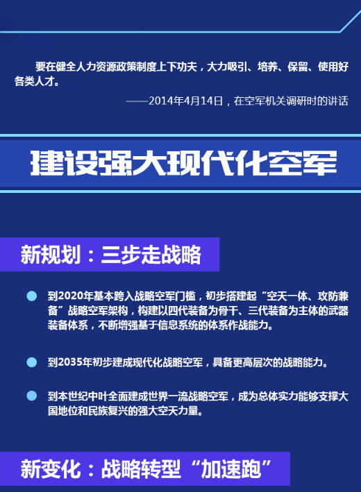 今年是新中國成立70周年,也是中國空軍建軍70周年。中國空軍以習(xí)近平強(qiáng)軍思想為指引,緊緊圍繞黨在新時(shí)代的強(qiáng)軍目標(biāo),部署和推進(jìn)了一系列戰(zhàn)略布局和戰(zhàn)略舉措。