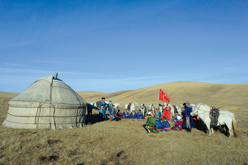 2017年,內(nèi)蒙古自治區(qū)蘇尼特右旗烏蘭牧騎隊(duì)員們聯(lián)名給習(xí)近平總書(shū)記寫(xiě)信,表達(dá)了為繁榮發(fā)展社會(huì)主義文藝事業(yè)作貢獻(xiàn)的決心。2017年11月21日,習(xí)近平總書(shū)記給他們回信,勉勵(lì)他們?cè)钗滞?,服?wù)牧民群眾,推動(dòng)文藝創(chuàng)新,努力創(chuàng)作更多接地氣、傳得開(kāi)、留得下的優(yōu)秀作品,永遠(yuǎn)做草原上的“紅色文藝輕騎兵”。圖為2018年11月20日,烏蘭牧騎隊(duì)員們又一次奔赴牧區(qū)為牧民們表演節(jié)目。 新華社發(fā) 東哈達(dá)/攝