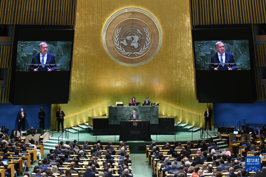 ??9月23日,在位于紐約的聯(lián)合國總部,聯(lián)合國秘書長古特雷斯在第80屆聯(lián)合國大會(huì)一般性辯論開幕式上致辭。新華社記者李睿攝
