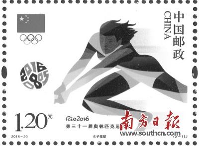 據(jù)介紹,第一枚郵票選擇排球比賽經(jīng)典瞬間,人物具有動(dòng)感,漸變色條也帶出運(yùn)動(dòng)的速度感,郵票顏色特別選擇了代表巴西的綠、黃、藍(lán)三色。而第二枚郵票選擇了男子接棒后奔跑瞬間,顏色以代表中國(guó)的紅、黃色為主。郵票由北京郵票廠采用影寫版印制,特殊工藝運(yùn)用體現(xiàn)明信出郵票動(dòng)感和科技感。