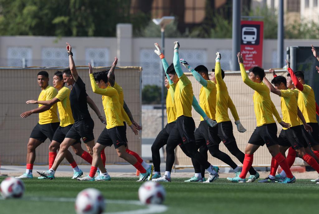 1月11日,中國男足隊(duì)員在卡塔爾多哈進(jìn)行訓(xùn)練,備戰(zhàn)將于1月12日開賽的卡塔爾男足亞洲杯。新華社記者丁汀攝