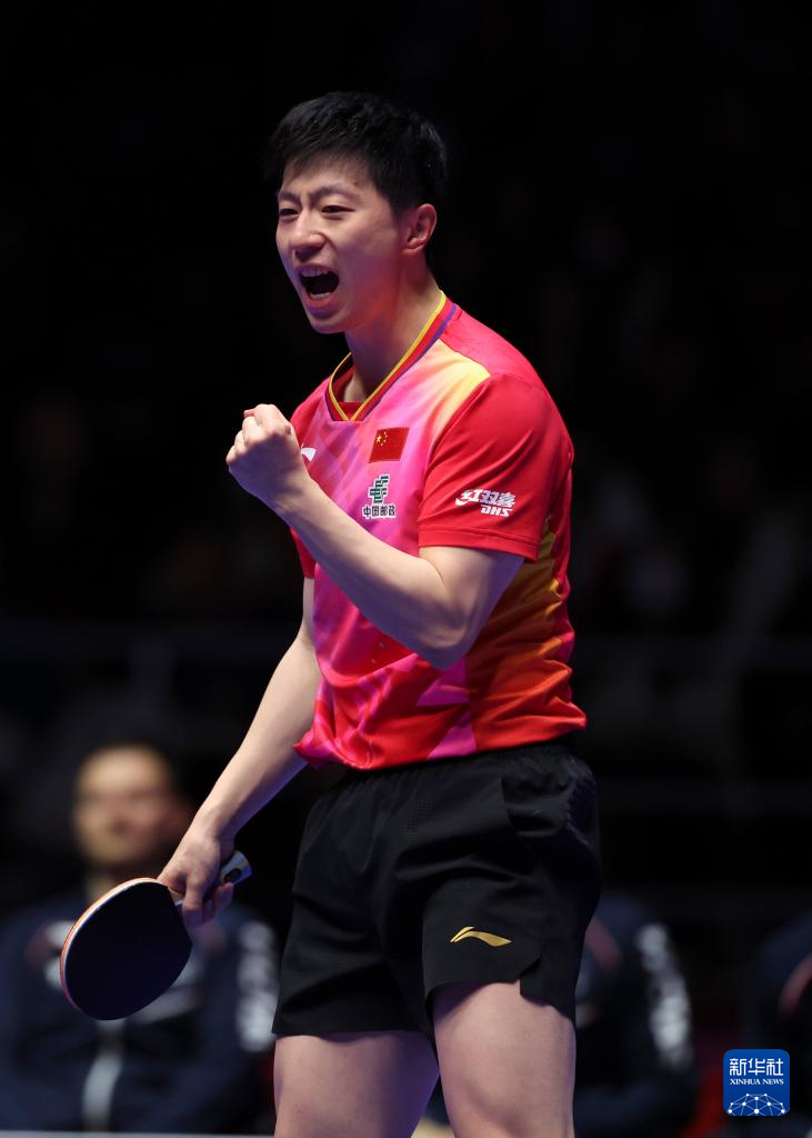 2月25日,中國隊(duì)選手馬龍?jiān)诘谌P比賽中慶祝得分,他3比1戰(zhàn)勝法國隊(duì)選手西蒙·高茲。當(dāng)日,在韓國釜山進(jìn)行的2024年國際乒聯(lián)釜山世界乒乓球團(tuán)體錦標(biāo)賽男子團(tuán)體決賽中,中國隊(duì)3比0戰(zhàn)勝法國隊(duì),獲得冠軍。新華社記者 姚琪琳 攝