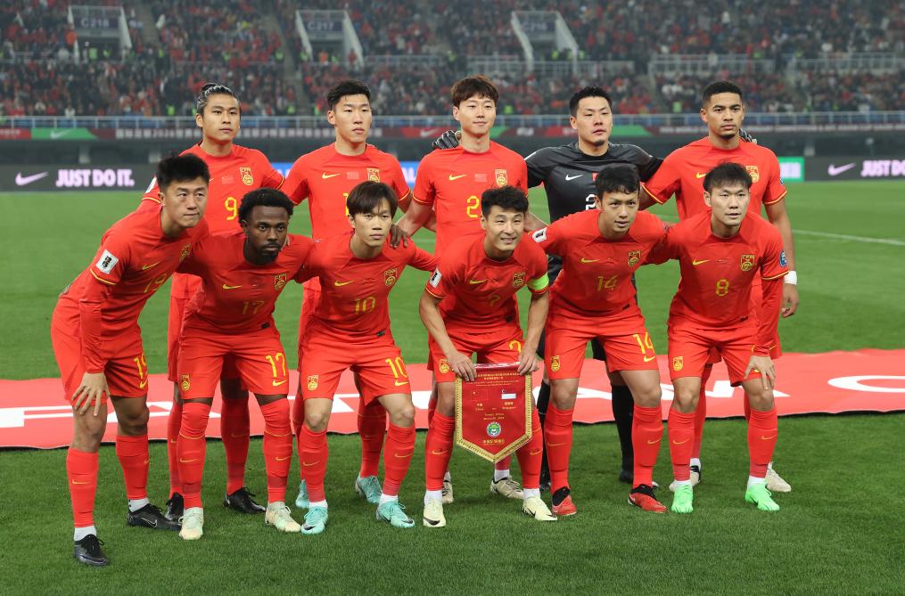 3月26日,中國隊首發(fā)球員在比賽前合影。新華社記者 賈浩成 攝