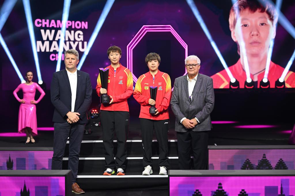 王曼昱賽后說:“贏下比賽非常不容易,大迪(王藝迪)狀態(tài)非常好,我倆一直在博弈,比分很膠著。第五局是關(guān)鍵節(jié)點,開局我落后很多,后來在發(fā)球上做出變化,重新調(diào)動自己,扭轉(zhuǎn)局面。在來法蘭克福之前有段時間沒有參賽了,能贏得這個冠軍是對近期訓(xùn)練的認可和肯定?!?/p>