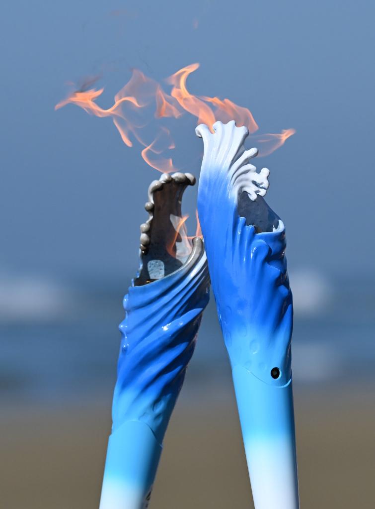 滿滿的科技感是本屆運(yùn)動(dòng)會(huì)的一大亮點(diǎn)。在此前進(jìn)行的采火儀式上,以可燃冰作為燃料的火炬科技感拉滿,大放異彩。“探索二號(hào)”科考船為本屆運(yùn)動(dòng)會(huì)采集的可燃冰,由潛航員通過保壓取樣器采集并帶回陸地?;鹁嬖O(shè)計(jì)團(tuán)隊(duì)表示,這象征科技的力量,也寓意海南自貿(mào)港發(fā)展的無限潛力。