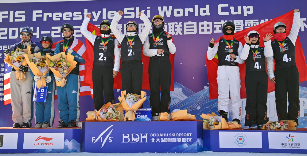 新華社長春2月24日電(記者李典、顏麟蘊(yùn))2024-2025賽季自由式滑雪空中技巧世界杯北大湖站24日落幕,中國隊(duì)共收獲3金2銀1銅。在當(dāng)日進(jìn)行的混合團(tuán)體比賽中,由徐夢桃、齊廣璞、李天馬組成的中國一隊(duì)獲得金牌,由陳梅婷、王心迪、李心鵬組成的中國二隊(duì)摘銅。