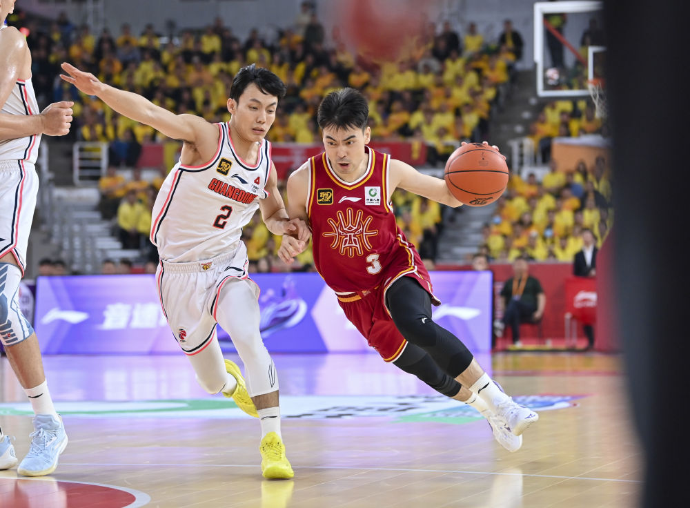 3月5日,廣東隊球員胡明軒(右)在比賽中上籃。當日,在2024-2025賽季中國男子籃球職業(yè)聯(lián)賽(CBA)常規(guī)賽第36輪比賽中,廣東隊主場127:83戰(zhàn)勝遼寧隊。新華社發(fā)(鄭家雄攝)