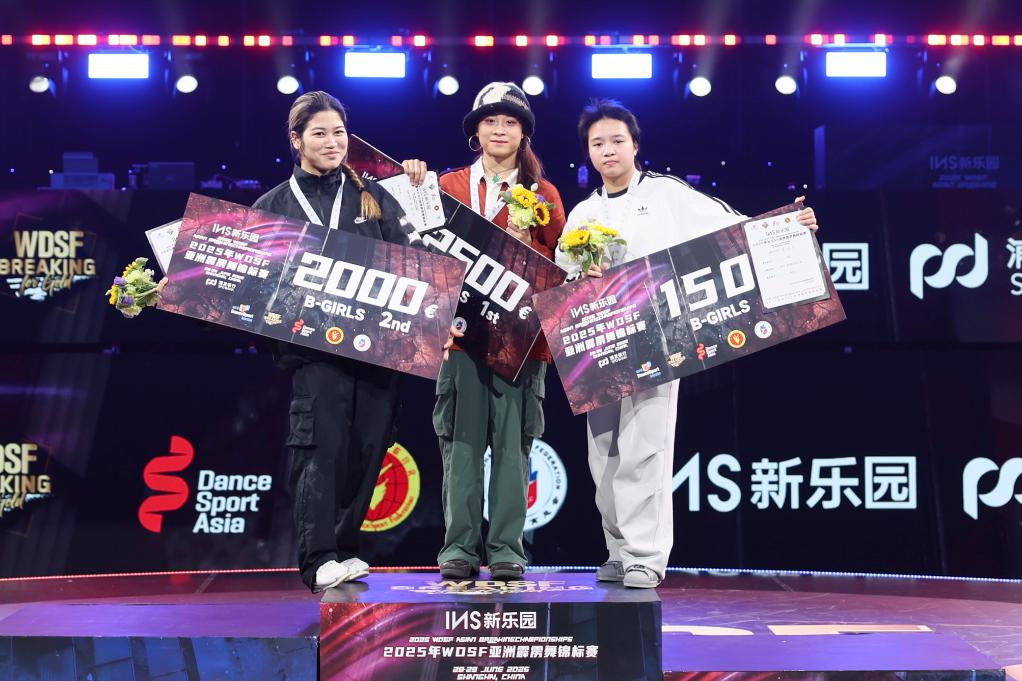 新華社上海6月29日電(記者許東遠、肖亞卓)2025年亞洲霹靂舞錦標(biāo)賽29日在上海盧灣體育館結(jié)束。中國選手郭樸在女子組表現(xiàn)出色,繼前一日奪得亞洲青年錦標(biāo)賽冠軍后,再度在成年組比賽中折桂,實現(xiàn)連冠。男子組方面,日本名將、杭州亞運會冠軍半井重幸則憑借穩(wěn)定發(fā)揮摘得金牌。