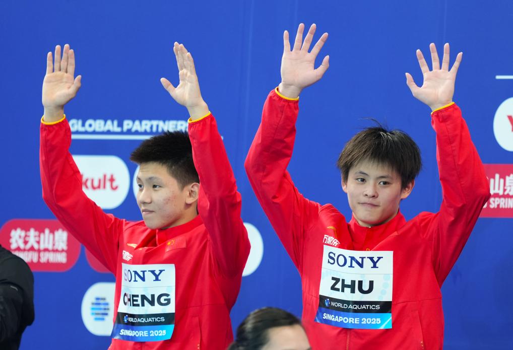 新華社新加坡7月29日電(記者岳晨星、王子江)2025年世界游泳錦標(biāo)賽跳水項(xiàng)目29日在新加坡繼續(xù)進(jìn)行,中國隊(duì)陳藝文/陳佳、程子龍/朱子鋒分別奪得女子雙人3米板和男子雙人10米臺金牌。