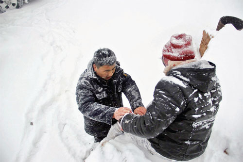 接到110指揮中心救援指令后,民警立即整裝出發(fā),并在途中與報(bào)警人周女士取得了聯(lián)系。車輛行至山間,救援難度超出了想象,整個山上都被大雪籠罩,白茫茫的一片,報(bào)警人也說不清自己遇險(xiǎn)的具體位置。救援民警想到與報(bào)警人通過微信聯(lián)系,獲得位置共享。在得到大概位置后,車輛卻遇到冰雪無法前行,救援民警只能徒步前往,在被冰雪覆蓋的山路上一腳深一腳淺地行走,也記不清一路上跌跌撞撞摔倒了幾次,眼看著快接近信息顯示位置了,卻無法準(zhǔn)確定位,只能繼續(xù)聯(lián)系報(bào)警人,讓她試著喊幾聲,以便確定具體方位,聽到聲音后,民警順著聲音方向前進(jìn),經(jīng)過一個多小時的艱難跋涉,終于在去往鳳林寺半山腰的樹林里找到了周女士。簡單了解了周女士傷情后,民警康艷軍小心翼翼地把周女士一路背下了山,令其脫離了險(xiǎn)境。