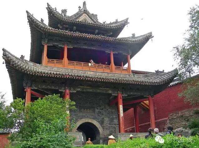 入顯通寺前,首先出現(xiàn)在眼前的是一座下層為石券洞,上兩層為木構(gòu)建筑的高大鐘樓,石洞的門楣上,刻有四個(gè)遒勁的大字:“震悟大千”。顧名思義,是說渾厚悠長(zhǎng)的鐘聲,能把大千世界震得醒悟過來。