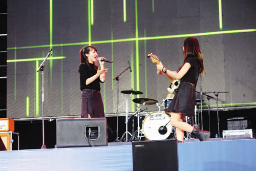 “希望你們能記住我們,我們是瞳樂隊(duì)?!闭l也想不到熟練操作吉他、貝司、架子鼓的是四位美女。這支來自北京,由四個(gè)熱愛搖滾、個(gè)性分明的90后女生組成的樂隊(duì),毫不遜色于大老爺們兒,她們將音樂感染力和舞臺(tái)視覺上的沖擊力融為一體,加上主唱獨(dú)特嗓音演唱的躁動(dòng)或安靜的歌,敲打著觀眾的靈魂。有觀眾戲稱,這就是美女的力量。